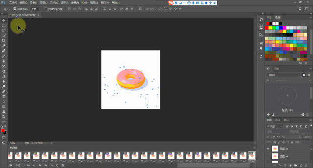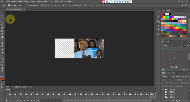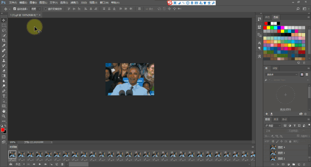 在PS中打開準(zhǔn)備好的GIF圖片(將GIF直接拖拽ps圖標(biāo)上即可打開),并點(diǎn)擊:窗口-時(shí)間軸,調(diào)出時(shí)間軸工具。