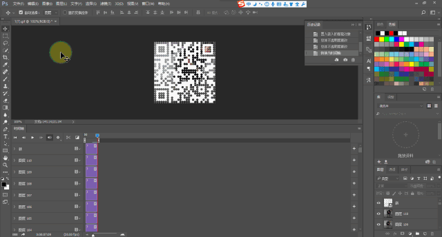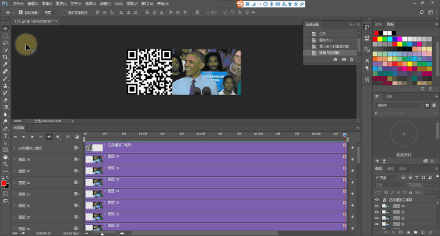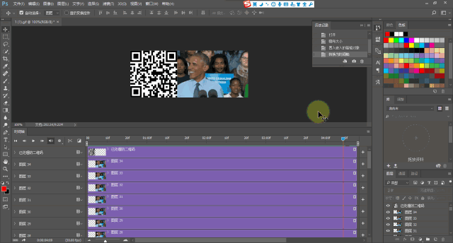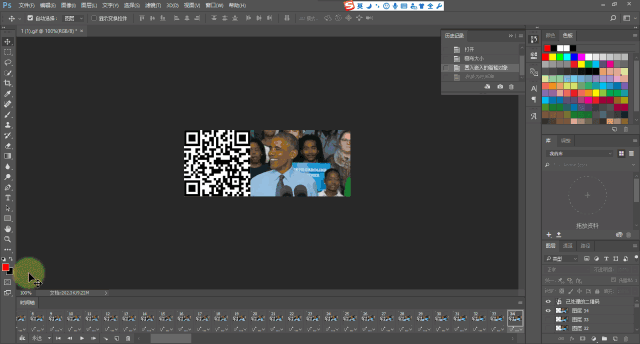 點(diǎn)擊時(shí)間軸GIF的最后一幀或者圖層最頂層,以確定等下置入二維碼的位置。