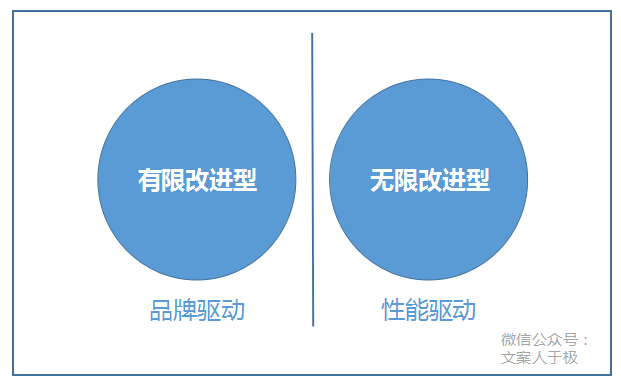 無(wú)限改進(jìn)型產(chǎn)品,主要依靠產(chǎn)品性能來(lái)驅(qū)動(dòng)推廣;有限改進(jìn)型產(chǎn)品,主要依靠品牌來(lái)驅(qū)動(dòng)推廣。