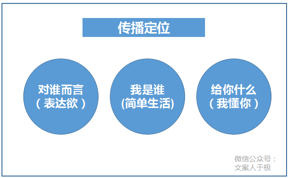 傳播定位依然要解決三個(gè)問(wèn)題:對(duì)誰(shuí)而言、我是誰(shuí)、給你什么。