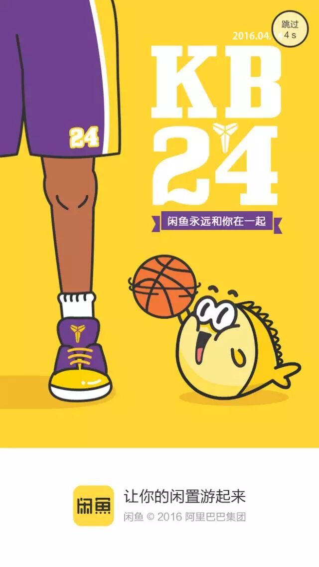 咸魚在科比告別賽當(dāng)天做的啟動(dòng)圖,文案是「永遠(yuǎn)和你在一起」。意思是雖然科比不在球場上了,但我們還在。雖說不是特別貼切,但至少把熱點(diǎn)和產(chǎn)品結(jié)合起來了,能看出運(yùn)營是有策略的。