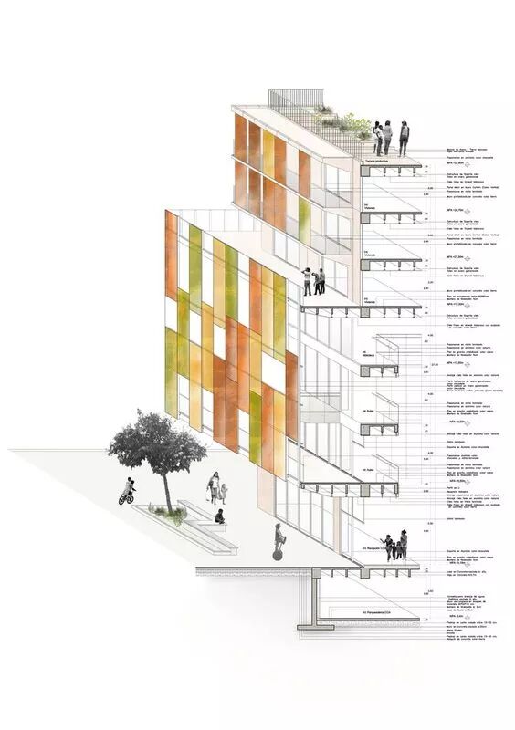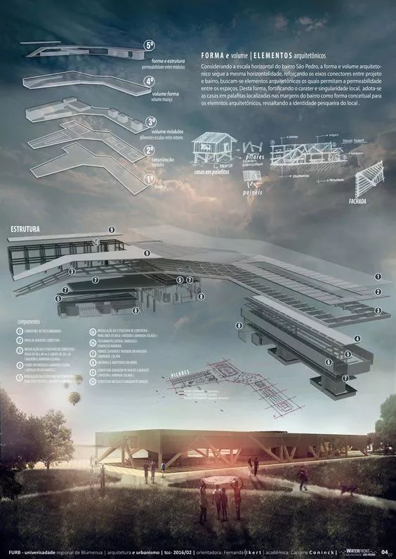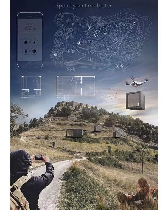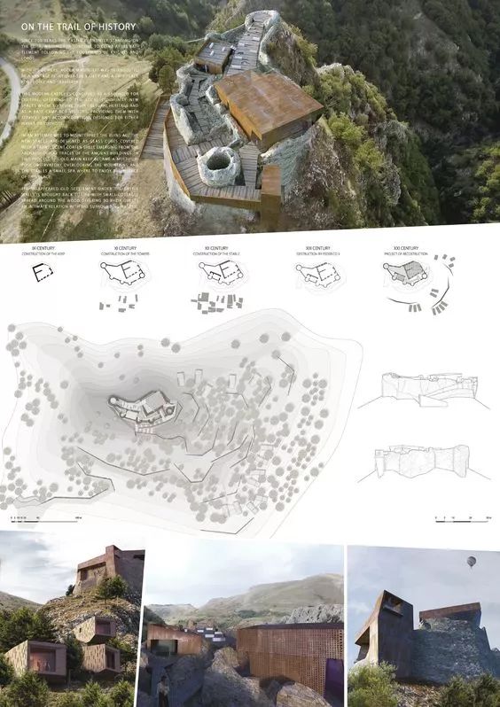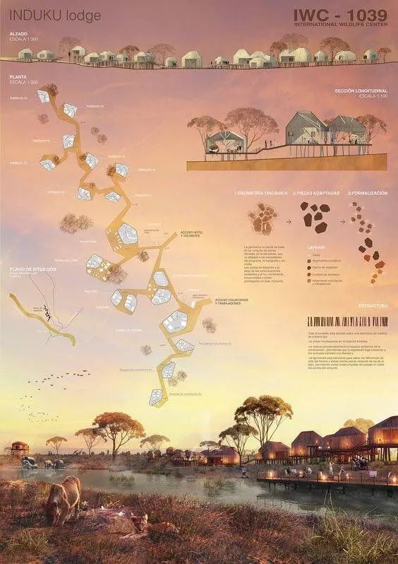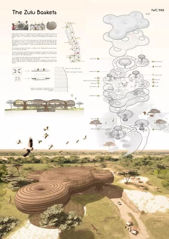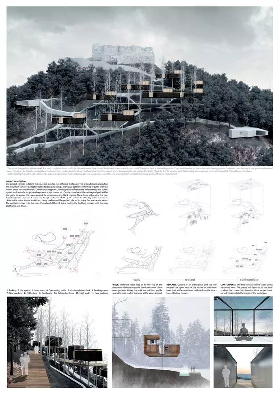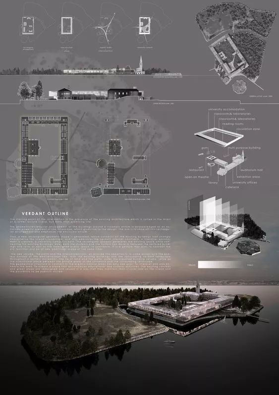 整個項目以主圖像為中心。這可以是一個計劃圖表或渲染,它周圍有補充的圖像。