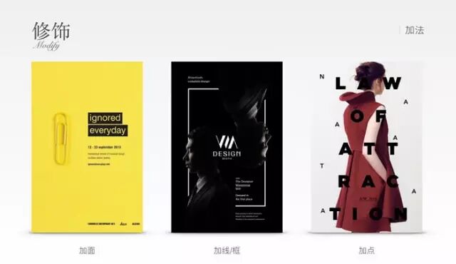 修飾上的加法:在基礎(chǔ)文案上添加元素,加強(qiáng)重點,平衡版式。