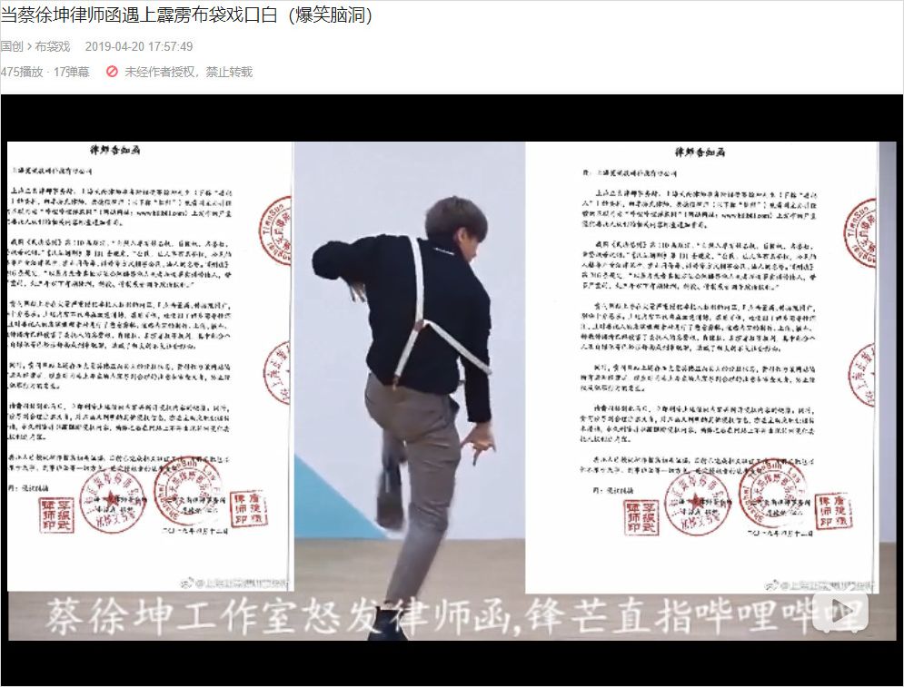 今年 2 月,蔡徐坤成為 NBA 籃球大使,引起虎撲直男的不滿(mǎn),網(wǎng)友開(kāi)始在 B 站惡搞蔡徐坤(甚至越來(lái)越過(guò)分)。蔡徐坤發(fā)律師函本來(lái)是正常維權(quán),卻被網(wǎng)友拿來(lái)寫(xiě)段子和惡搞。