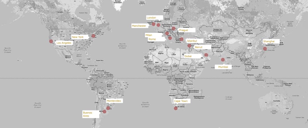 除了以上的高新制造業(yè),連鎖服務(wù)業(yè),紡織業(yè),我們還發(fā)現(xiàn)一種新的全球化形態(tài),這家企業(yè)也是我們的老朋友---赤馬傳媒。赤馬傳媒為大量頂級(jí)企業(yè)拍攝過(guò)膾炙人口的廣告片。這類(lèi)企業(yè)的全球化路線,和別的行業(yè)完全不同。(下圖是赤馬在全球的聯(lián)合office布局圖)