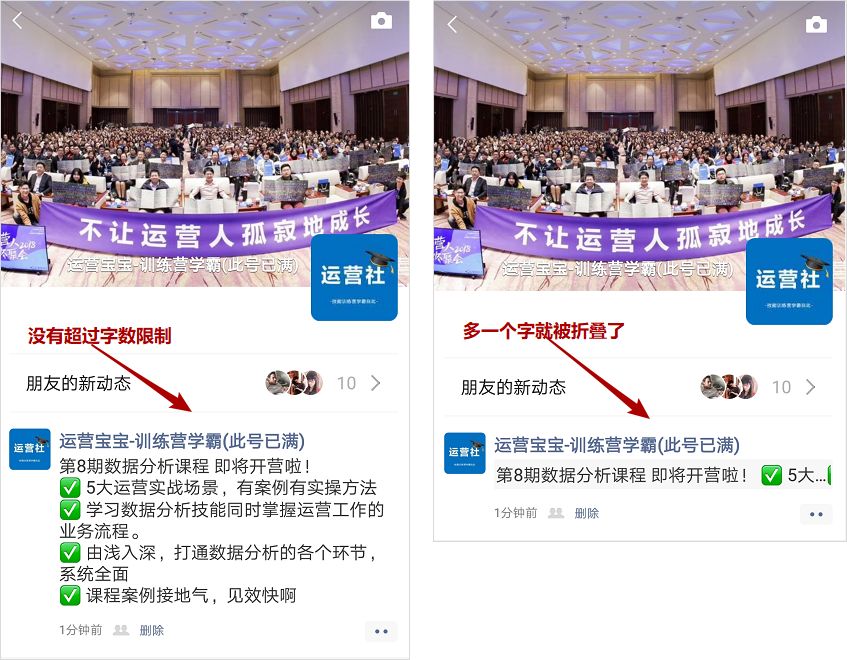 除此之外,如果你也不想被折疊成點(diǎn)擊“全文”的方式,還要注意不能超過(guò)行數(shù)限制(6行)。