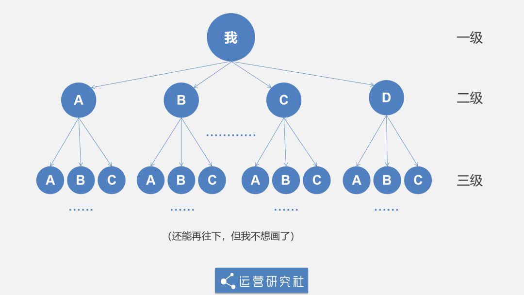 而招募團(tuán)隊(duì),其實(shí)就是一個(gè)多級(jí)分(chuán)銷(xiāo)的過(guò)程。例如,我拉了 20 個(gè)人,這 20 個(gè)人就是我的團(tuán)隊(duì)成員。