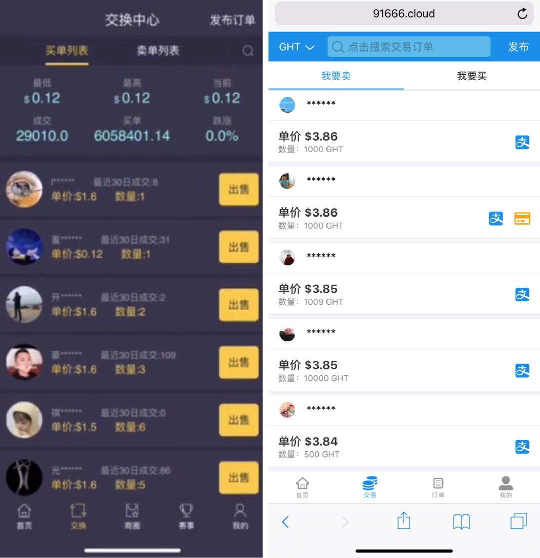 進(jìn)入網(wǎng)站后,可以看到這樣一個(gè)“交易中心”。這個(gè)交易中心其實(shí)就相當(dāng)于之前 App 上的“交換中心”,只不過(guò)把出售的糖果換成了 GHT。