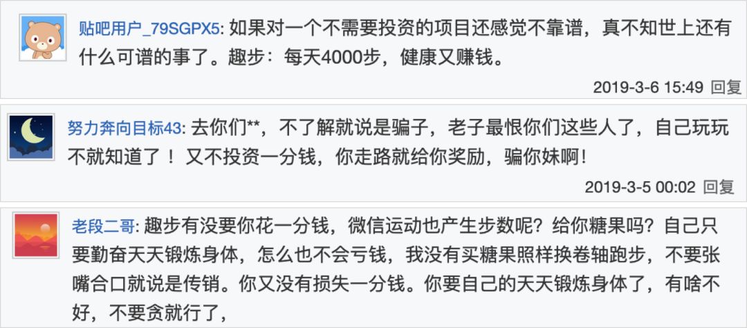 趣步的相關(guān)人員還會(huì)在各種渠道辟謠,我發(fā)現(xiàn)他們的觀點(diǎn)基本上都很一致,不知道是內(nèi)部培訓(xùn)還是真的被洗腦了,主要有以下幾種形式: