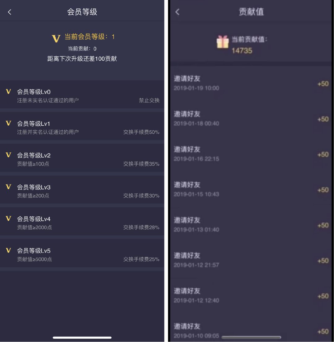 會(huì)員等級(jí)則跟貢獻(xiàn)值相關(guān),想要獲得貢獻(xiàn)值,只有一個(gè)方法,就是推廣。用戶(hù)每推薦一個(gè)人,就能獲取 50 點(diǎn)貢獻(xiàn)值。