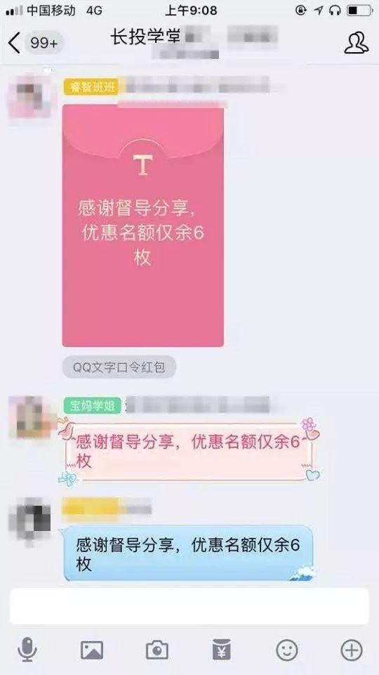 「長投學堂」巧妙地用了 QQ 的一個功能:QQ口令文字紅包,搶紅包的人需要輸入口令語句才可以領紅包。
