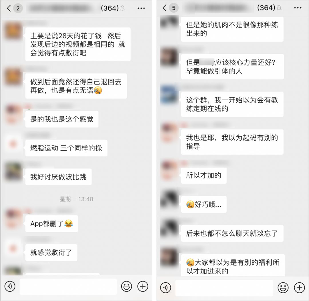 前年 9 月份,花了 288 元買了一個運動博主的健身課之后,我滿懷激動加入了她的付費訓練營(微信群),期待著有打卡監(jiān)督、個性化答疑……能在訓練營里收獲完美身材。