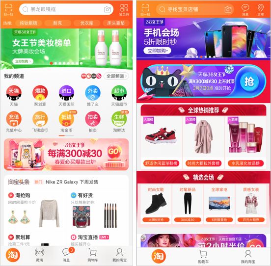 左國內(nèi)版淘寶,右海外版淘寶 Lite
