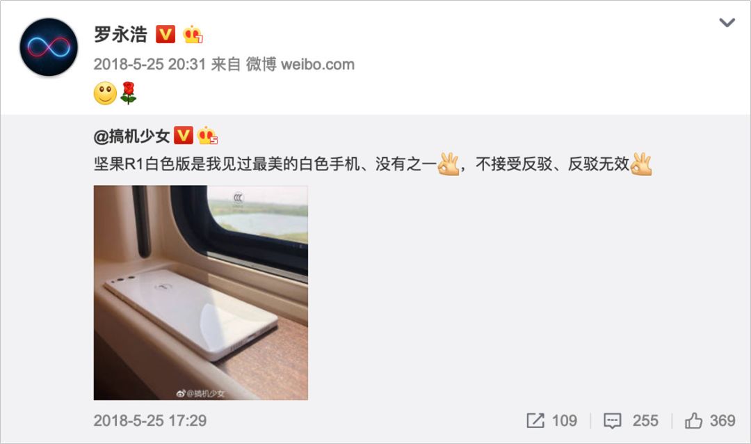 比如 2018 年 5 月 15 日的堅(jiān)果 R1 發(fā)布會(huì)上,老羅給堅(jiān)果 R1 找到的定位是:全世界最好看的白色手機(jī),好像很有道理的樣子(雖然筆者依舊覺(jué)得 iPhone4/4s 白色款更好看)。