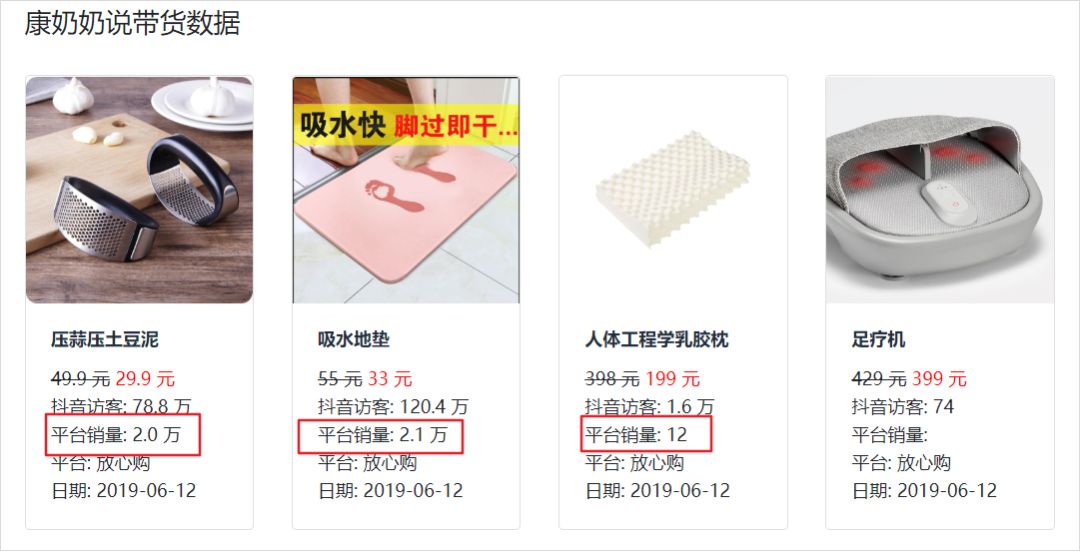 總的來說,@康奶奶說的帶貨數(shù)據(jù)在抖音上算是不錯(cuò)的,甚至有的商品銷量超過了 2 萬。