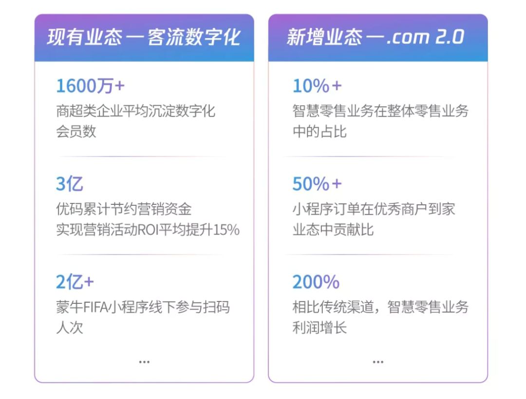 企業(yè)信息化成本極大降低,建立官網(wǎng)和商城、實現(xiàn)貨物在線的成本降低。用微信公眾號和小程序打通從內(nèi)容到購買的整個鏈條,一次購買,實現(xiàn)用戶數(shù)據(jù)和私域流量的沉淀,能夠更好地留存、轉(zhuǎn)化、提高粘性。此之謂數(shù)據(jù)中臺和用戶中臺。