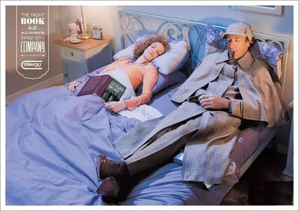 他們圍繞“一本好書(shū),是你最好的陪伴”的主題,在廣告里讓《唐吉可德》、《魔戒》、《斯大林》、《福爾摩斯》、《The Monk Who Sold His Ferrari》、《pippi》這些書(shū)中的主角就睡在讀者身旁。