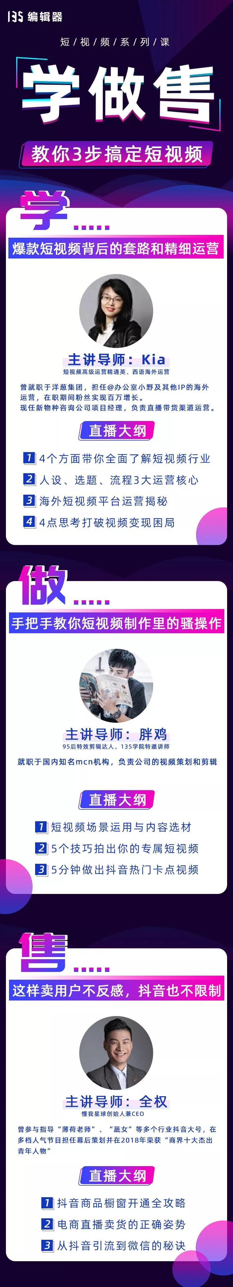 135編輯器聯(lián)合三位短視頻大咖,開(kāi)啟短視頻系列課程,教你三步輕松搞定短視頻!