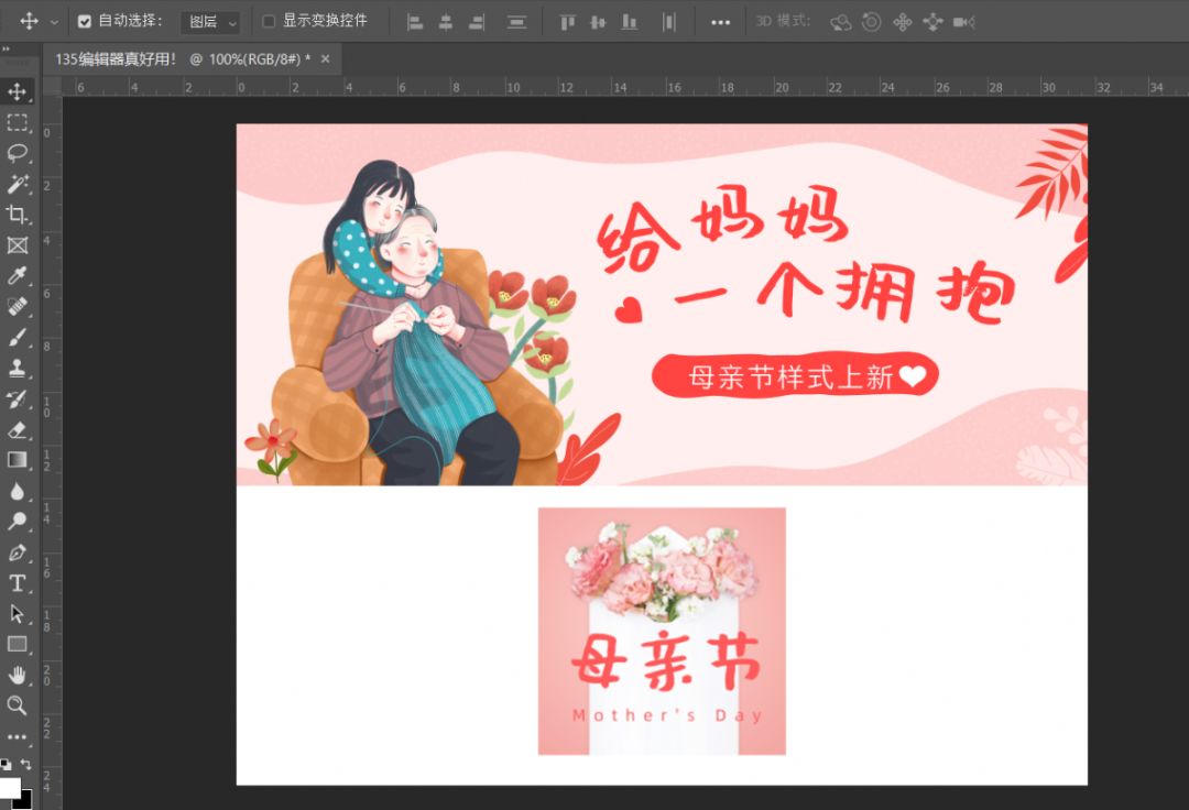 然后我們將制作好的封面大圖和小圖拖入到新建的畫布中,讓它們上下排列。