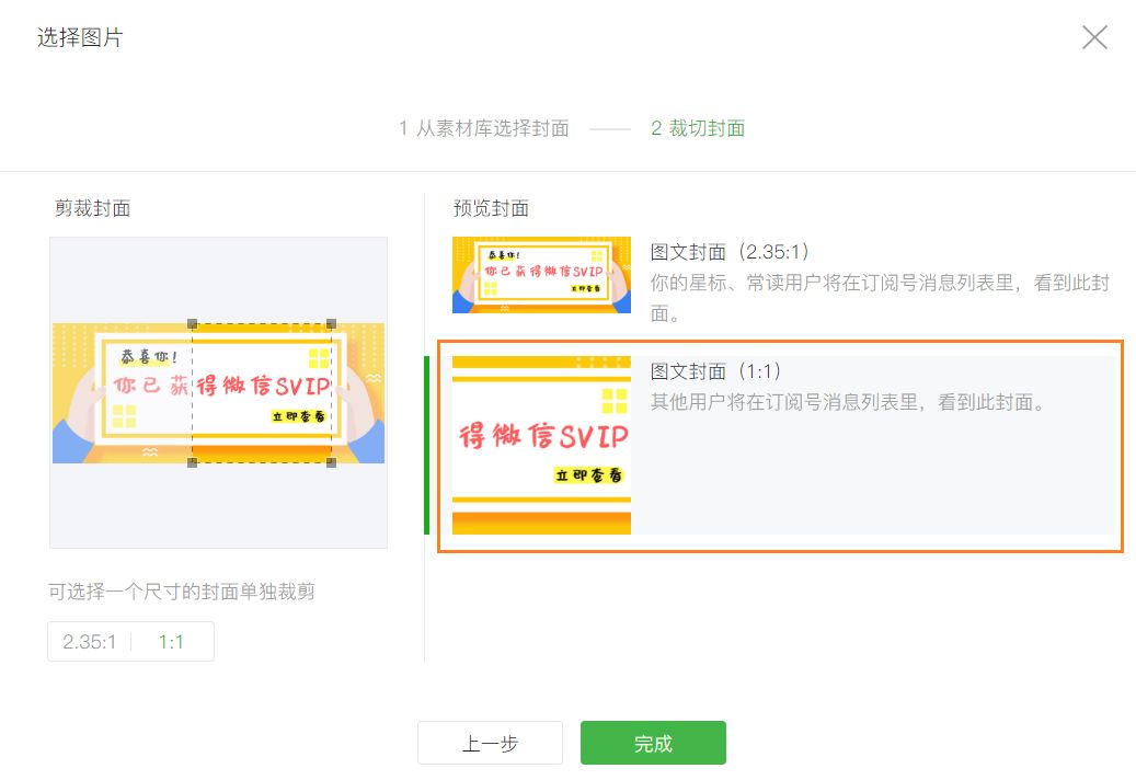 接下來(lái)我們?cè)谖⑿殴娖脚_(tái)里上傳封面圖,然后按照要求選擇不同的圖片就可以啦!