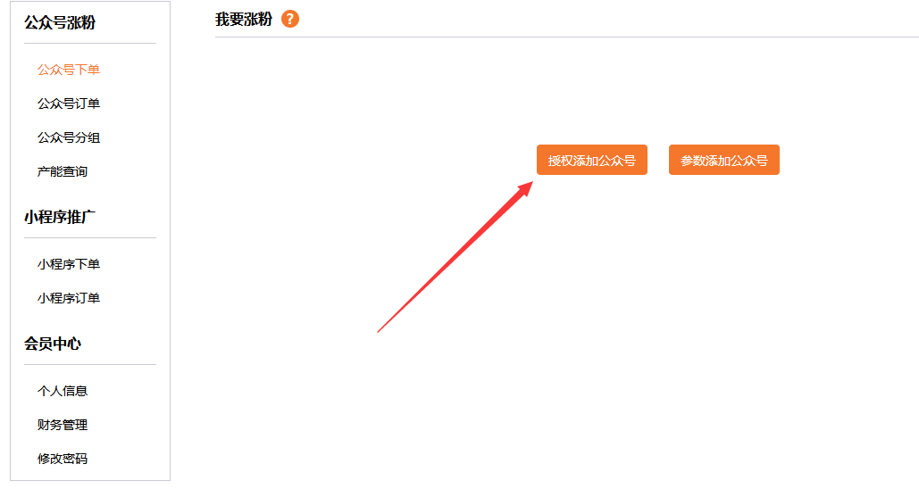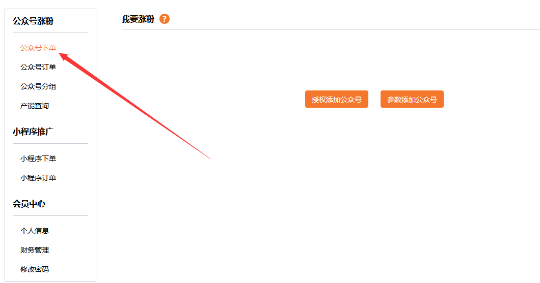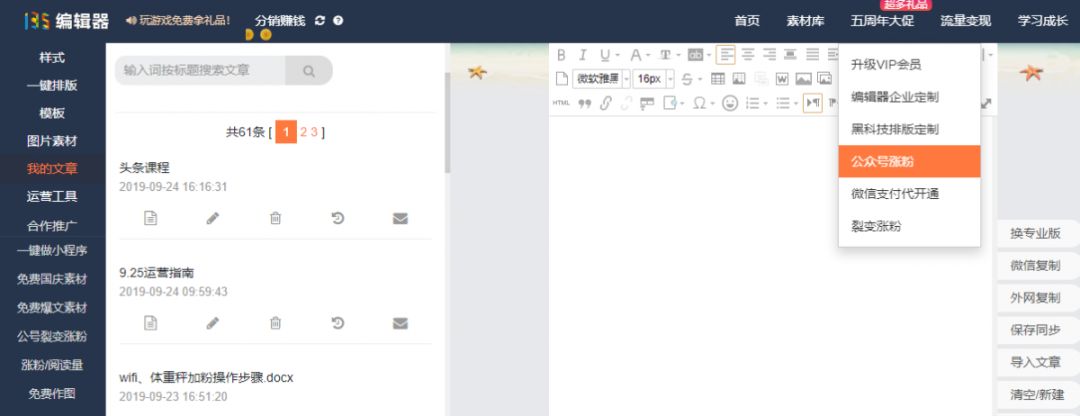 或者在編輯器頁面,點擊『五周年大促』下拉菜單中的『公眾號漲粉』選項