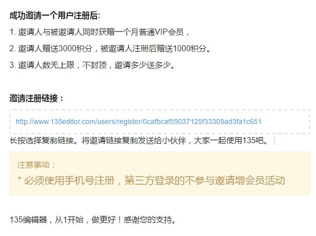點(diǎn)擊邀請(qǐng)鏈接:http://www.ptgmusicacademy.com/users/register/ddb12a17ce400c35fe041d275a578351就可以加入135編輯器了哦,偷偷告訴大家(點(diǎn)擊該鏈接,還可以獲得7天VIP會(huì)員哦,一般人我不告訴,哈哈哈哈)