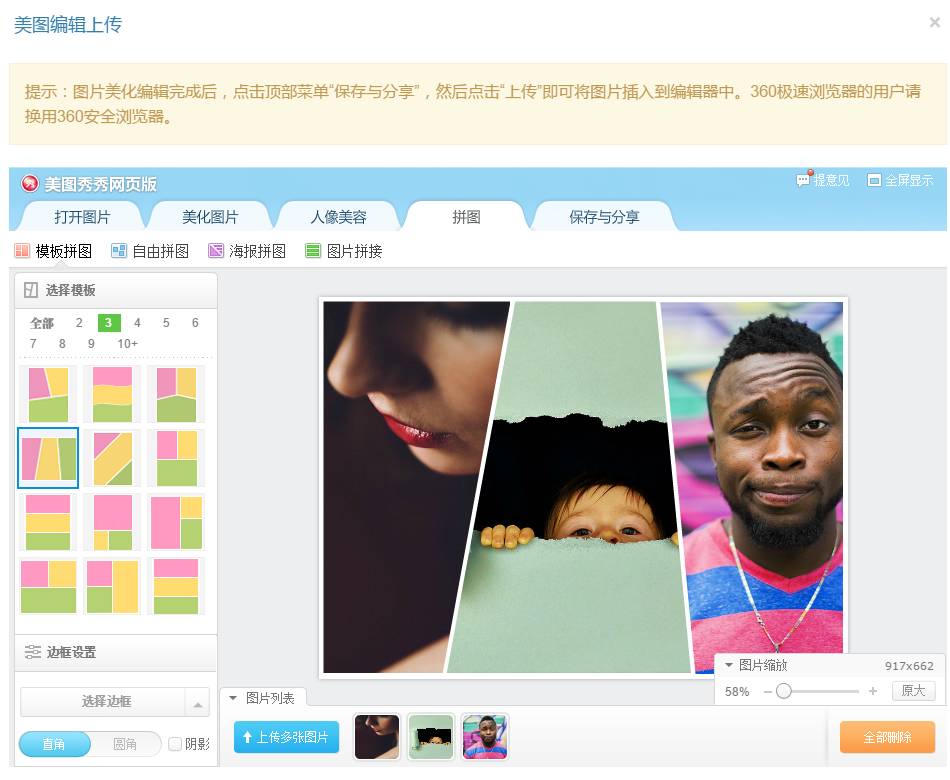 135編輯器對接了美圖秀秀,你可以在里面使用非常多的功能。