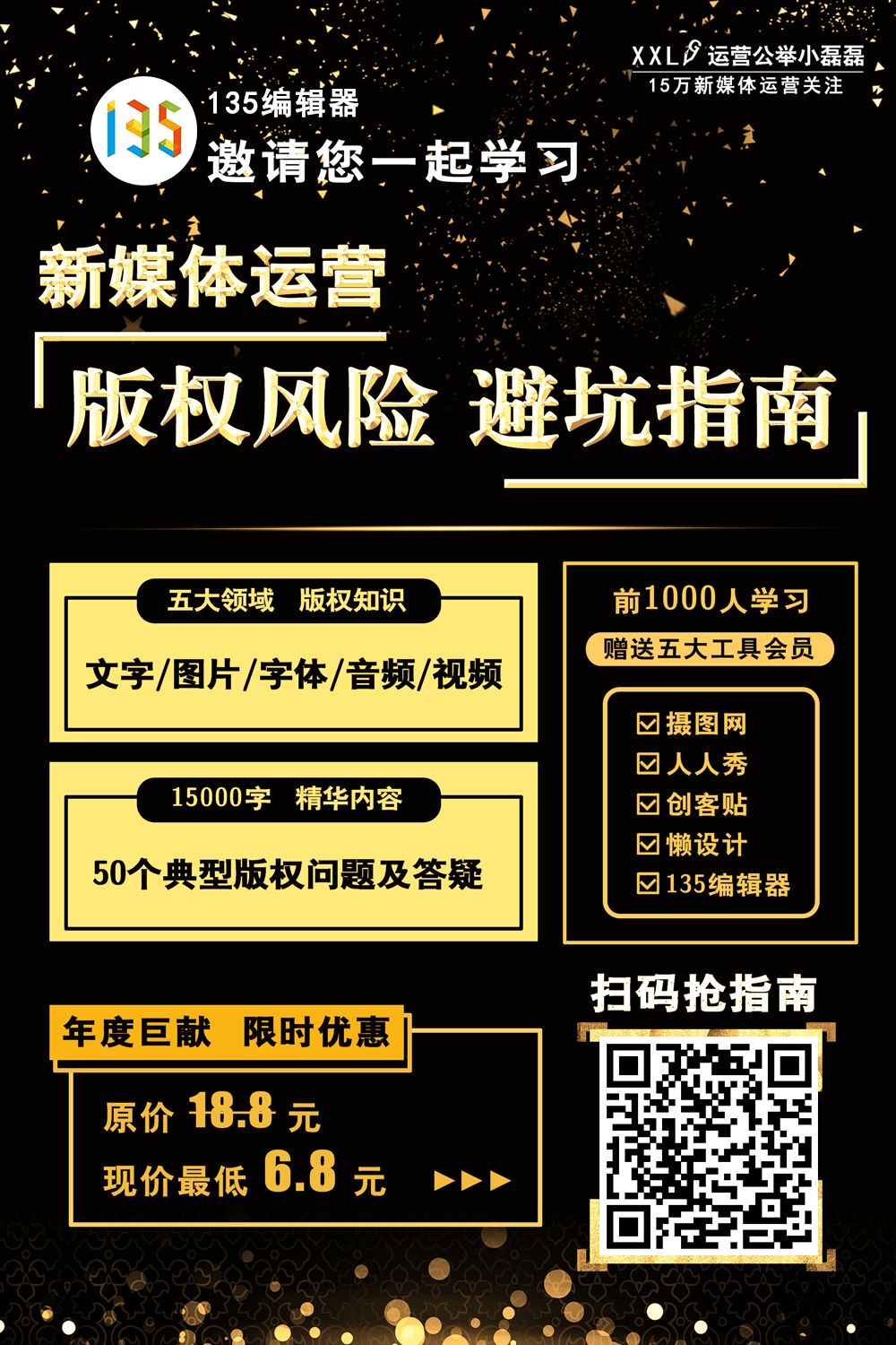 根據(jù)相關(guān)法律及近年真實(shí)案例進(jìn)行了總結(jié)性的解答,制作了一份《新媒體運(yùn)營(yíng)·版權(quán)風(fēng)險(xiǎn) 避坑指南》。