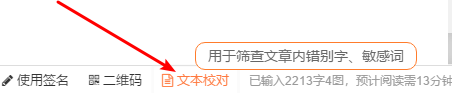 編輯排版好文章之后,點(diǎn)擊編輯器下方的【文本校對(duì)】,就可以開(kāi)始校對(duì)啦~