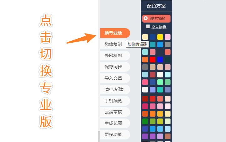 2、切換編輯器為專業(yè)版,使用專業(yè)版能夠更加方便我們對樣式進行修改。