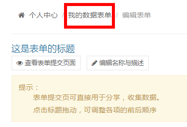 來查看表單和查看表單數(shù)據(jù)以及再次對(duì)表單標(biāo)題封面內(nèi)容或表單項(xiàng)進(jìn)行修改。