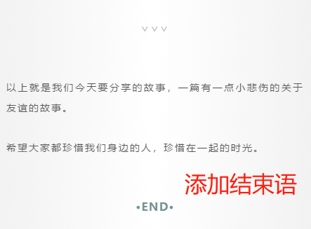 既沒有引導(dǎo)性的話語(yǔ)帶用戶走進(jìn)這篇推文的情景,也沒有結(jié)束性的話語(yǔ)告訴用戶這篇推文已經(jīng)結(jié)束了,只是干巴巴的放了個(gè)故事上去,讓人沒有閱讀的欲望。