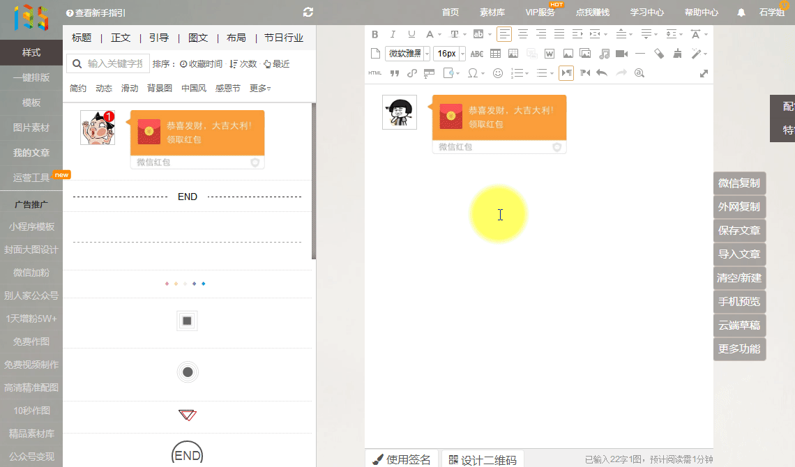 然后再清空文檔,進(jìn)行文章的排版編輯。當(dāng)寫到需要放入此樣式的位置時,直接點擊使用。