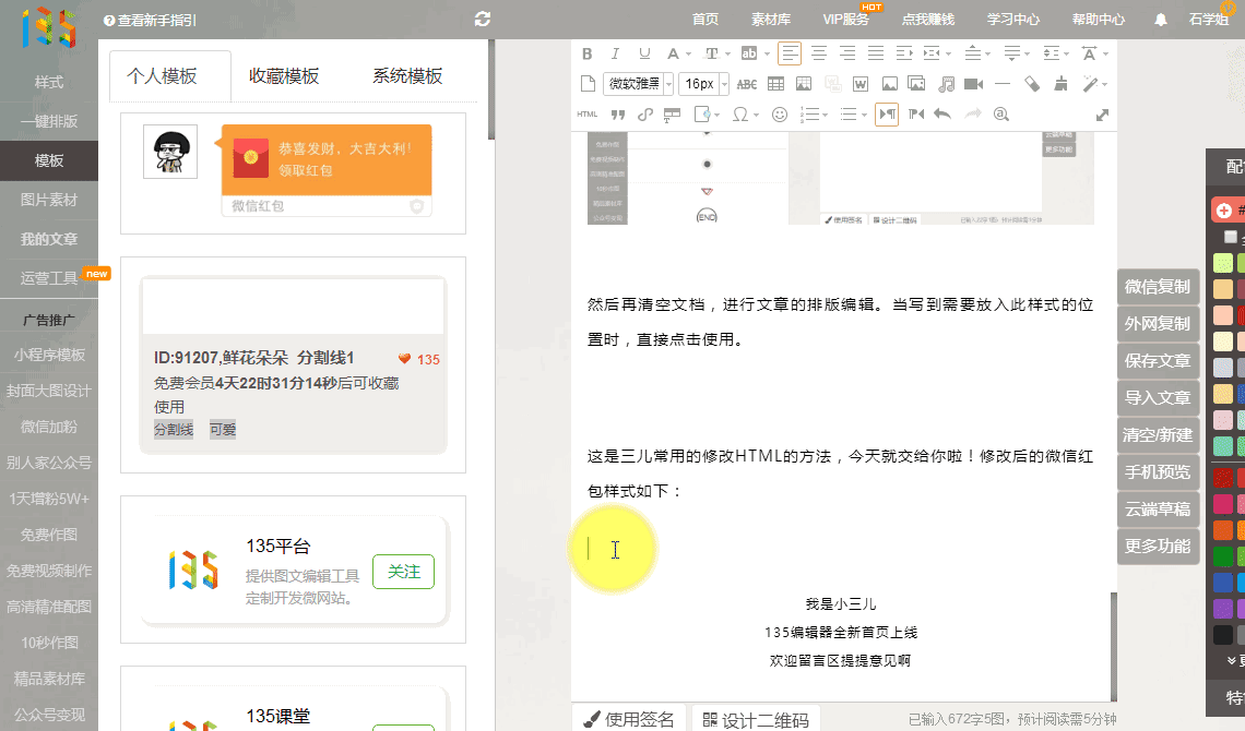 所以三兒告訴你們一個解決方法:清空文檔后,僅點擊需要修改的樣式,然后再進(jìn)入HTML模式中修改。(就像本文的第一個GIF圖所示)
