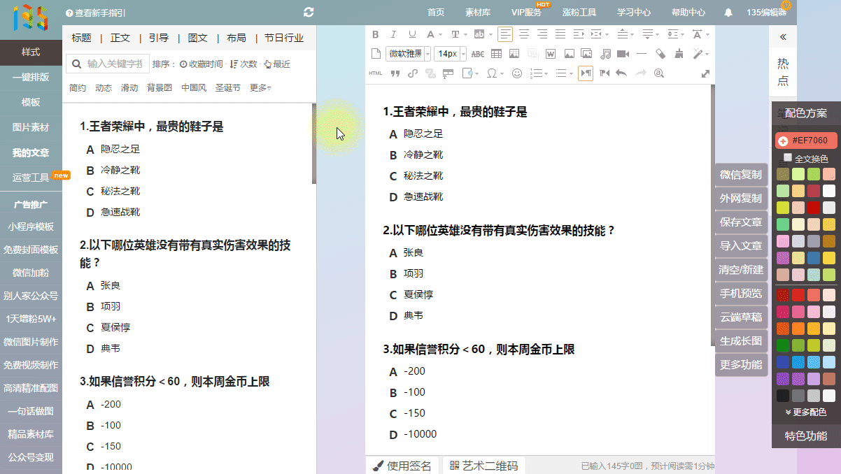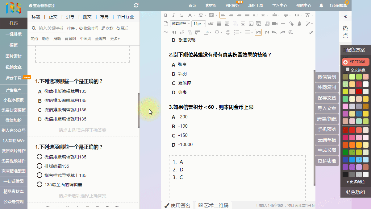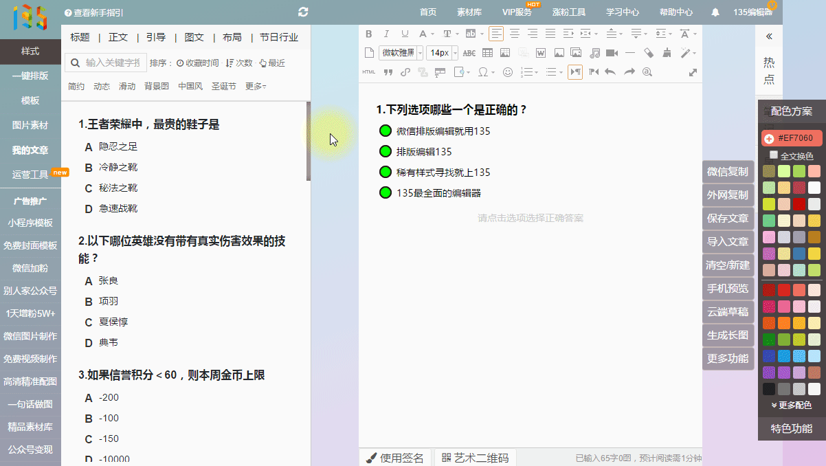 今天來135編輯器講一下最近朋友們使用比較頻繁的“選擇題”樣式換色教程。