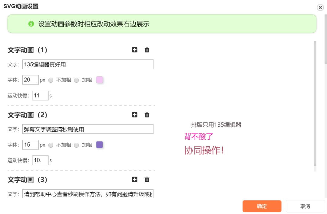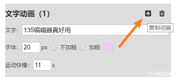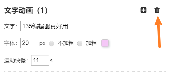 點(diǎn)擊【+】可以復(fù)制當(dāng)前這行文字的屬性。包括文字內(nèi)容、字號(hào)、是否加粗、顏色、運(yùn)動(dòng)速度。