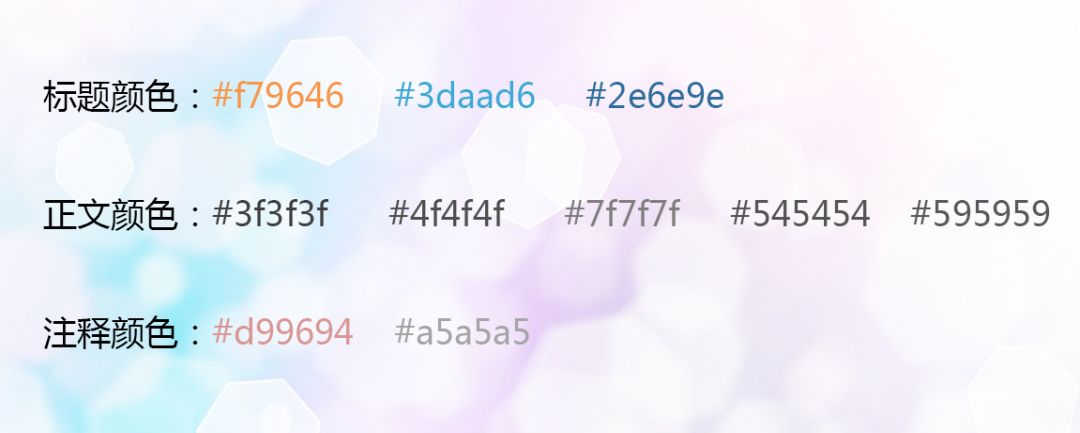 建議形成自己統(tǒng)一的配色方案,最好是成體系的,這樣會給讀者更深的印象。如下: