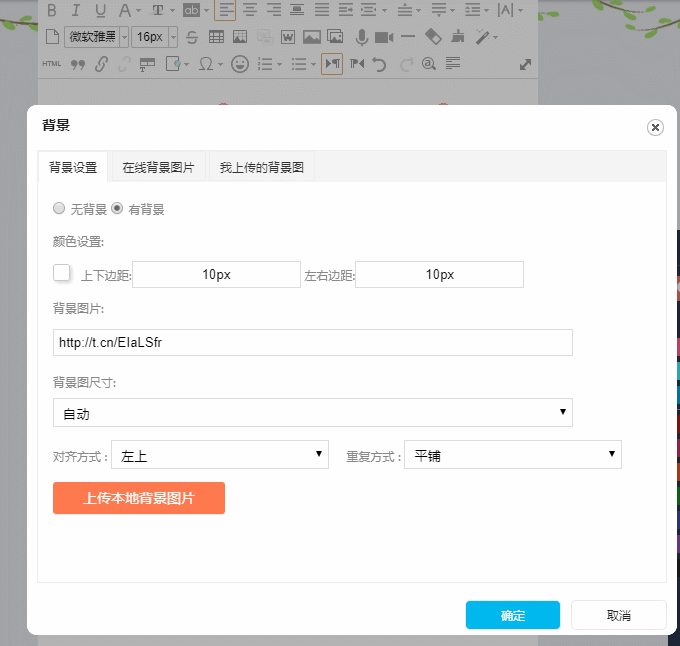 第三步,點擊背景按鈕,添加背景圖片鏈接。