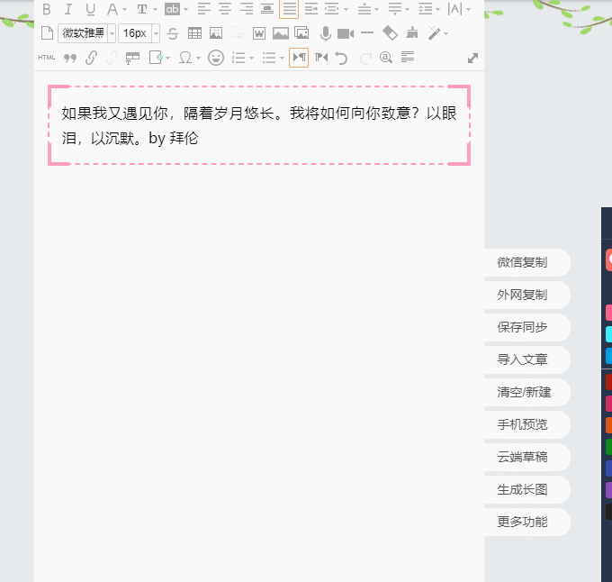 最后三兒再強調(diào)一點,135編輯器的每一個樣式都支持設(shè)置背景圖哦,只要你想法野,什么騷操作都能玩出來。不過,三兒還是建議大家不要把一篇文整得太花哨,眼花繚亂的適得其反,背景圖只能是錦上添花的效果,千萬不要反客為主哦!