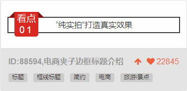 第二,選擇適合大標題的標題樣式。文案當中將商品種類分成兩個大類,然后再對各種商品進行敘述。所以我們可以選擇一個長條形的框線標題樣式: