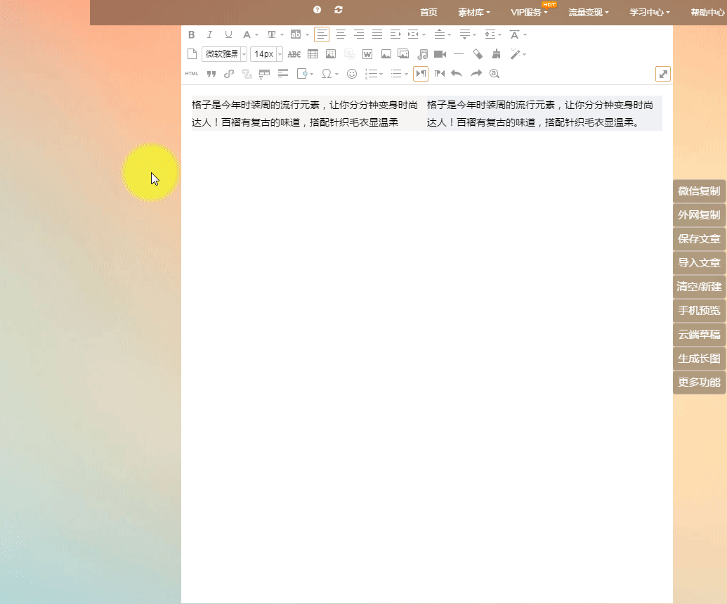 所以要現(xiàn)在HTML模式,刪除這兩段代碼或修改為 0px,這一步主要是為了讓兩邊文字與文字之間、圖片與圖片之間沒有間隙,也可以只將 10px修改為 0px 。