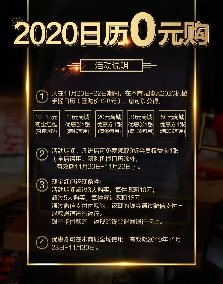 11月20日至11月22日活動期間,凡在本商城購買這款機械手搖日歷,即可獲得直接返現(xiàn)和超多優(yōu)惠券!