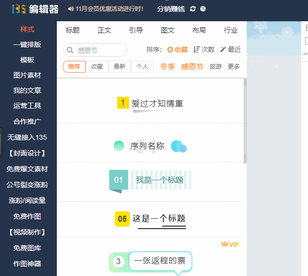1、在樣式中心搜索關鍵詞『感恩節(jié)』即可找到最新的感恩節(jié)樣式。