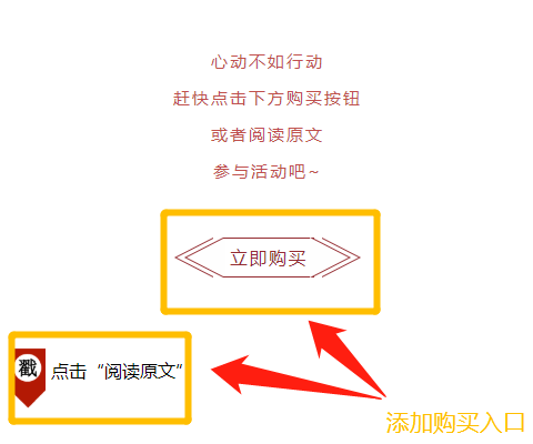 這篇文章是以美食為主的電商活動(dòng)文,目的是要將產(chǎn)品或者活動(dòng)推送出去,那么產(chǎn)品的購買入口就是非常重要的。尤其是我們?cè)谧鲭娚膛虐娴臅r(shí)候,購買入口在排版中的位置至關(guān)重要,如果你不設(shè)置,用戶不僅不知道該去哪里購買產(chǎn)品,而且這篇推文的目的還會(huì)喪失。