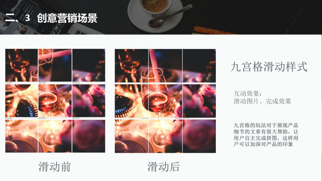 5)內(nèi)容營銷。如逐行顯示、消失,公眾號「胡辛束」就很會玩這個,有興趣的話可以去看下,還有如答題樣式。