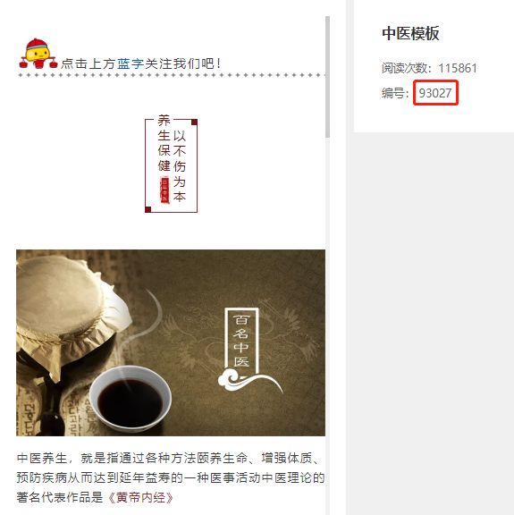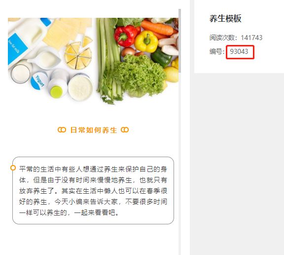 還有兩個養(yǎng)生模板推薦,在『模板中心』搜索93043或93027,即可使用哦。