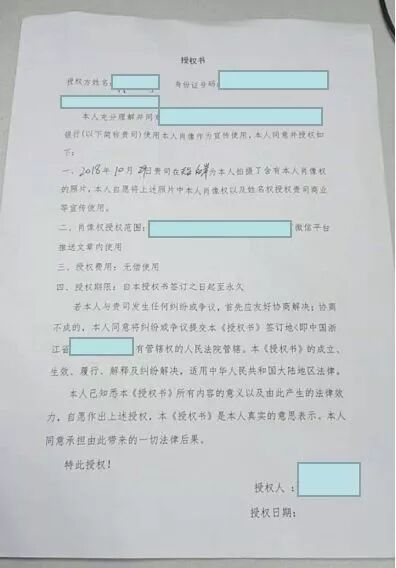 書面授權(quán)。通過書面、視頻方式獲得人物肖像授權(quán)書的肖像圖片可使用,授權(quán)時需注意: