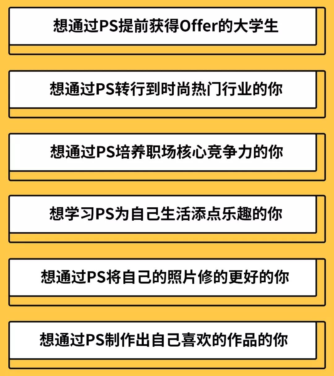 為了研發(fā)出一套讓大家學完之后就能立刻用的上PS課程,雅客老師汲取的前者的成功經驗,以案例入手,來帶大家完成各個場景下的作品制作。