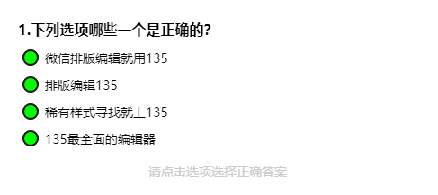【樣式介紹】:在選擇題中點(diǎn)擊ABCD對(duì)應(yīng)選項(xiàng),通過(guò)不同色彩顯示答案正誤;或直接點(diǎn)擊顯示所有題目正確答案。
