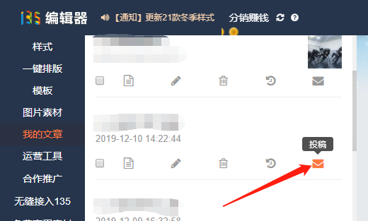 2.在左側(cè)『我的文章』中找到該篇文章,點(diǎn)擊『投稿按鈕』